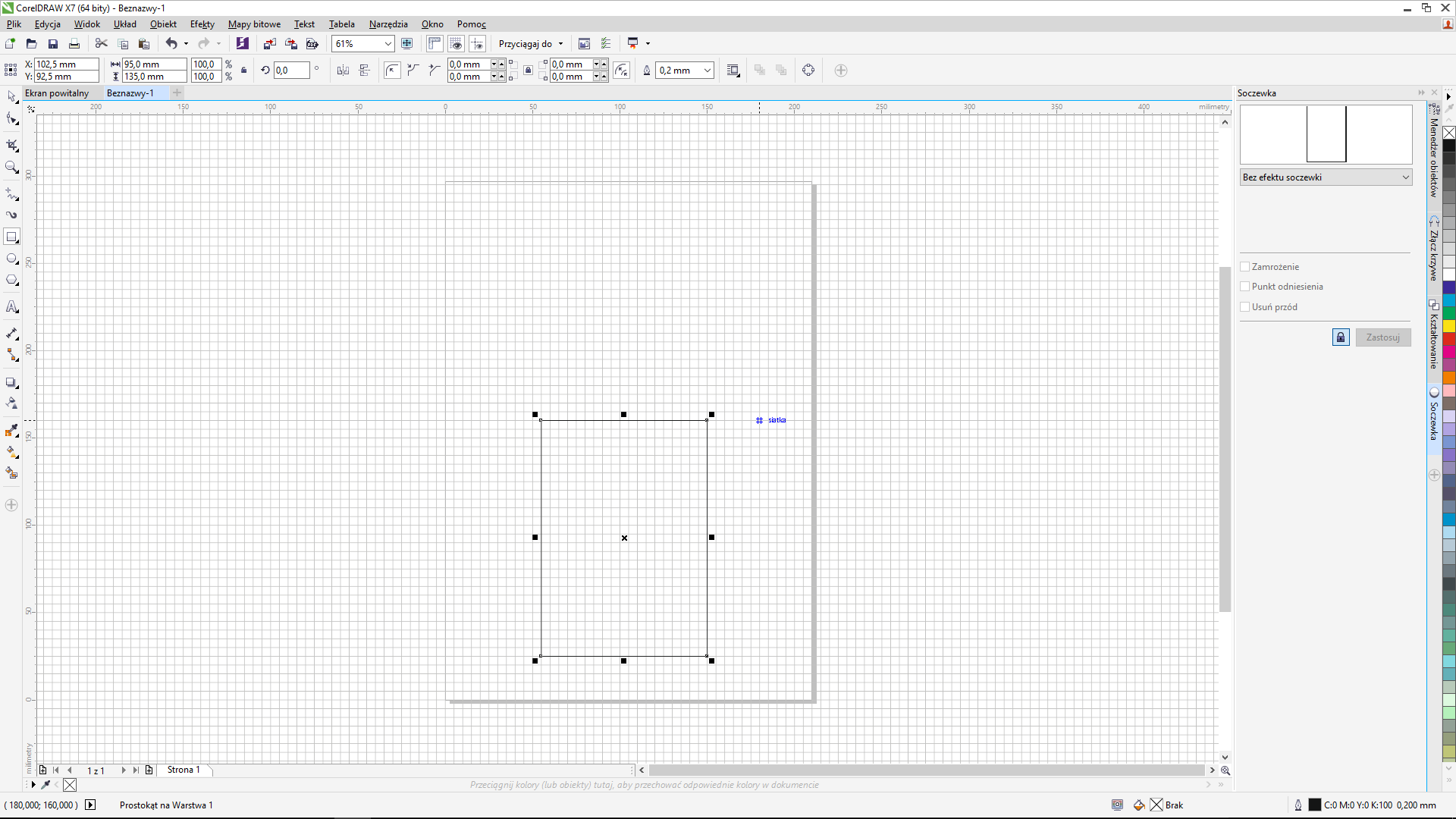 Kolejnym krokiem jest narysowanie prostokąta o wysokości mniej więcej połowy strony narzędziem Prostokąt (F6).