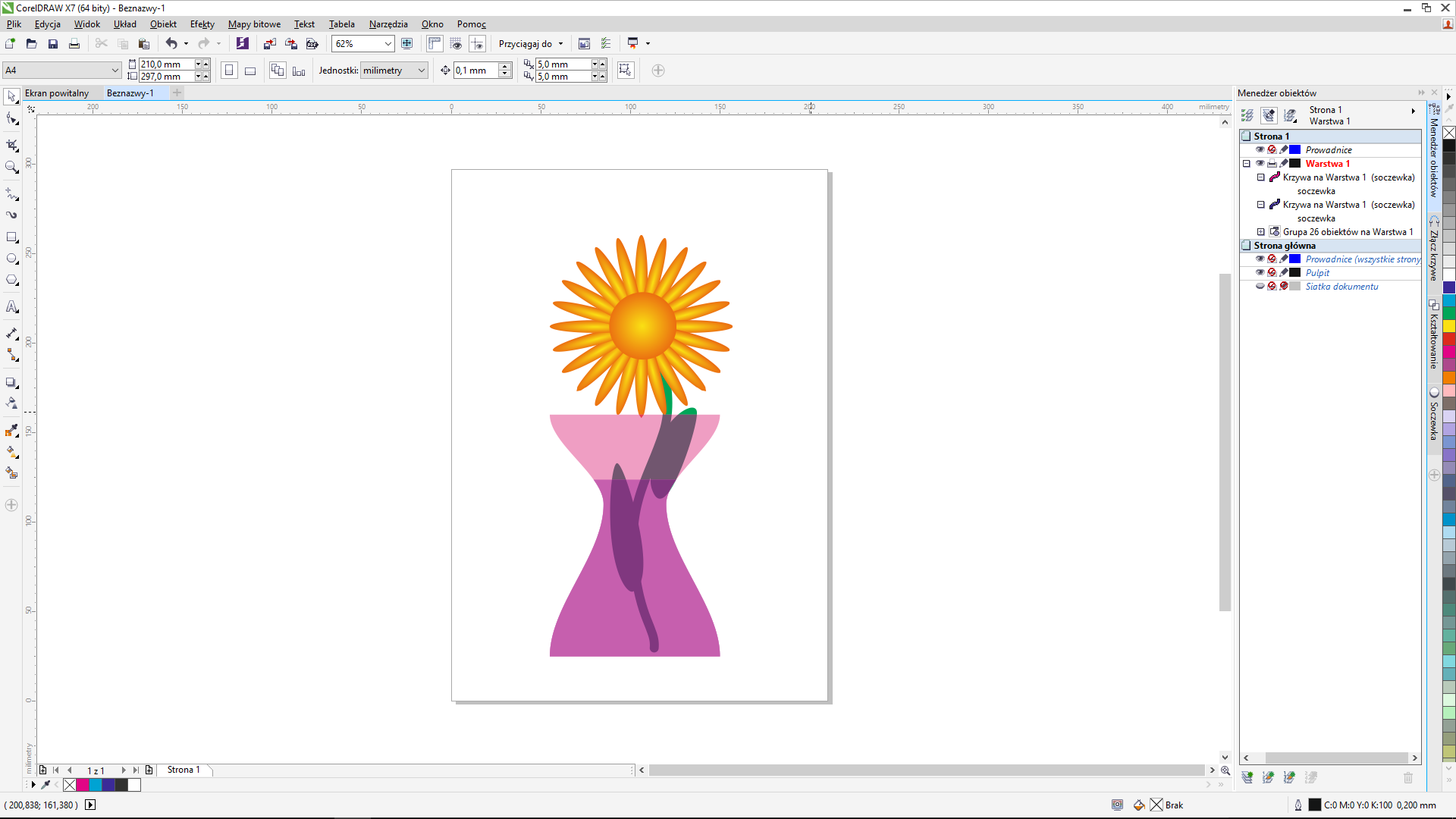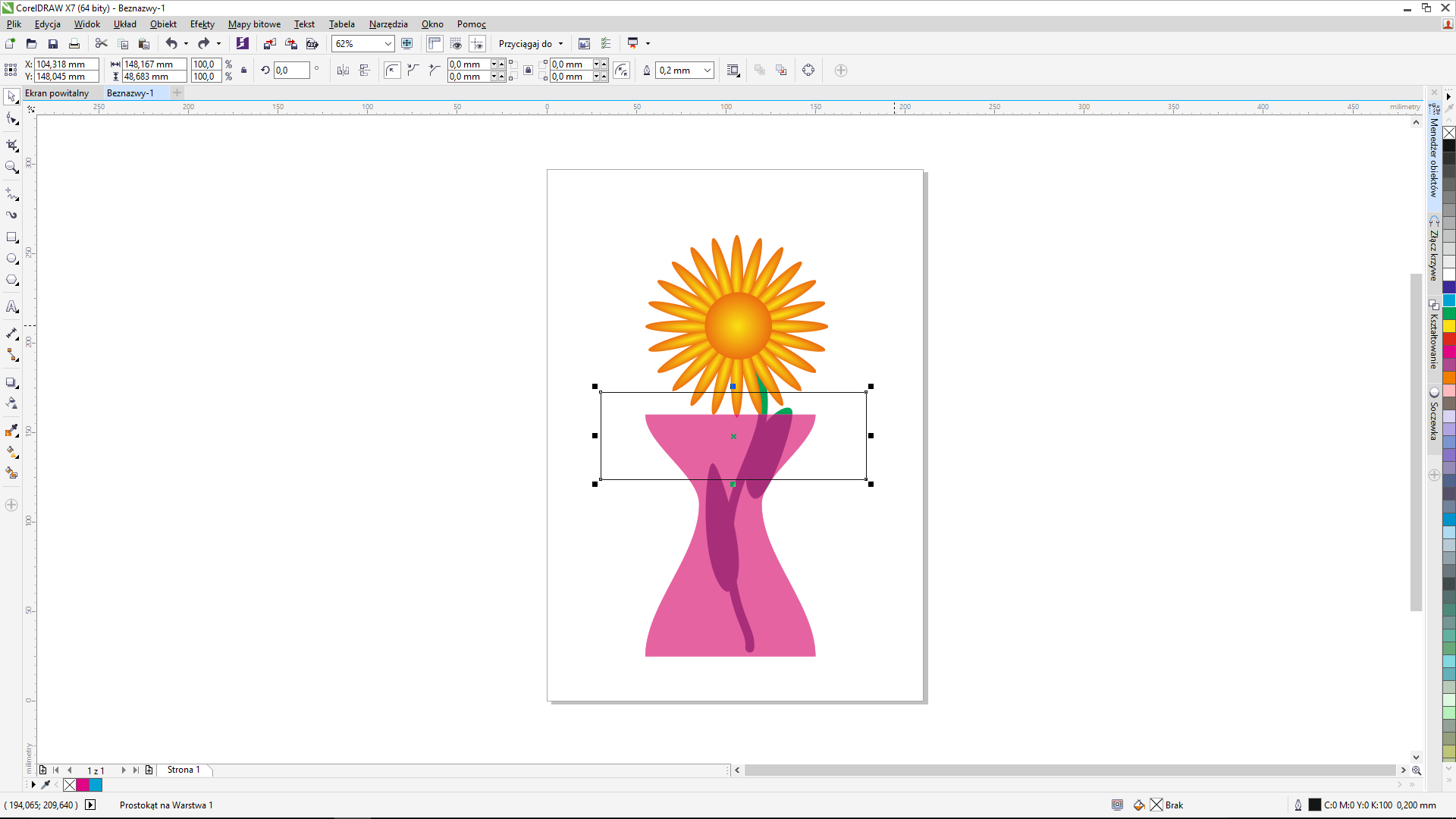 Ostatnim krokiem może być wykorzystanie kwiatka z poprzedniego tutoriala i umieszczenie go w wazonie. W zależności od potrzeb modyfikujemy jego wielkość oraz pamiętamy o właściwej kolejności obiektów na warstwie.
